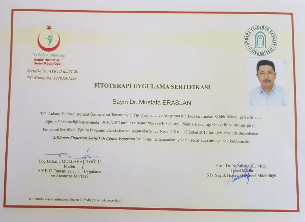- Fitoterapi Eğitimi: 23 Nisan 2016 – 12 Şubat 2017