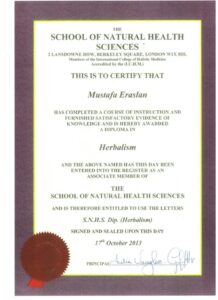 - Advanced Herbalism Certificate: 12 Aralık 2013